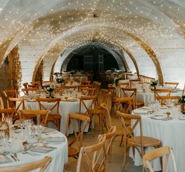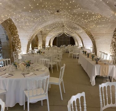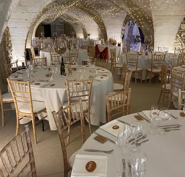 Tout en pierres apparentes ces 400 m² de salles voûtées peuvent accueillir jusqu'à 250 personnes assises plus une piste de danse, et 280 personnes en version cocktail.