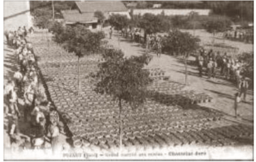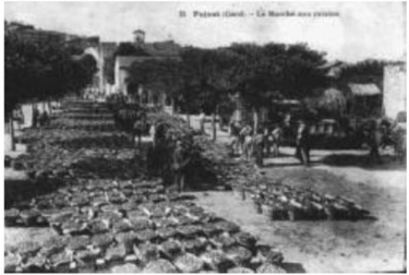 Entre les deux guerres, Pujaut devint, grâce aux vignes de l’étang, un marché très important de raisins de table, en particulier les Chasselas dorés, et les anciens se souviennent des banastes bien rangées sur la place de la Poste, puis sur celle du marché dont les seuls témoins sont les deux bascules aujourd’hui au repos.